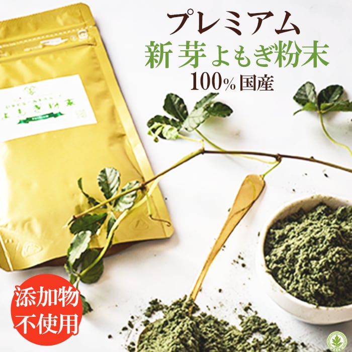 無添加無農薬100%の新芽若葉のみ使用したよもぎ粉末。